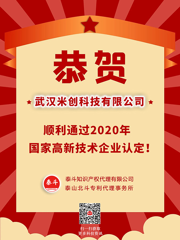 恭賀武漢米創(chuàng)科技有限公司順利通過2020年國(guó)家高新技術(shù)企業(yè)認(rèn)定!